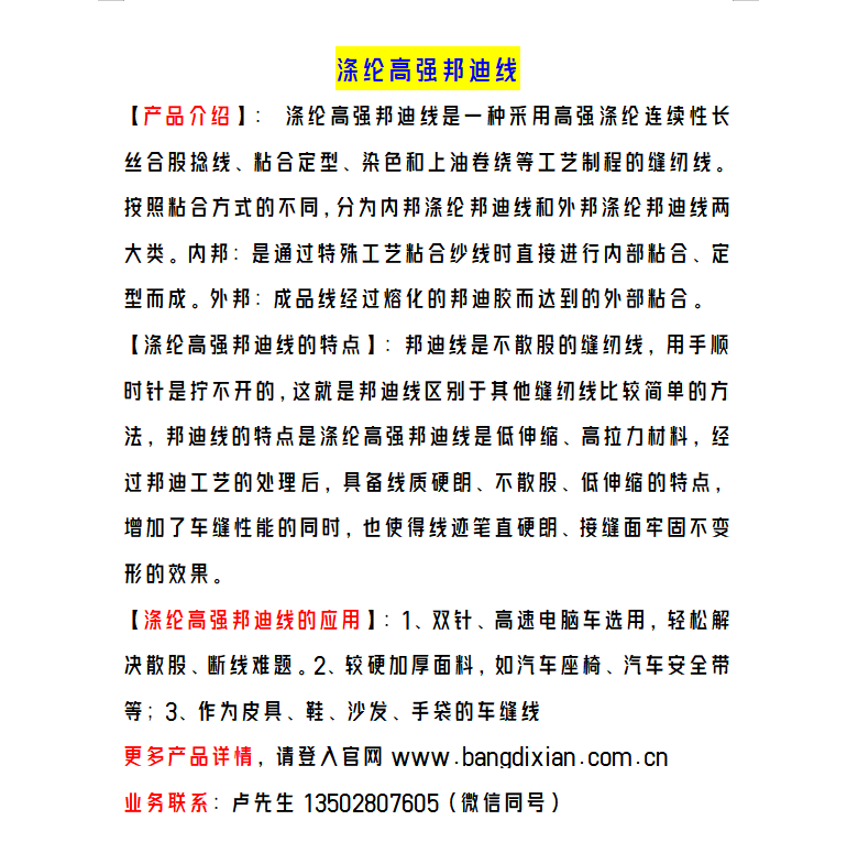 涤纶邦迪线,涤纶长丝邦迪线,邦迪缝纫线,高强邦迪线,Bonded缝纫线